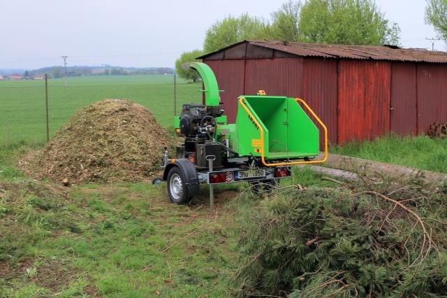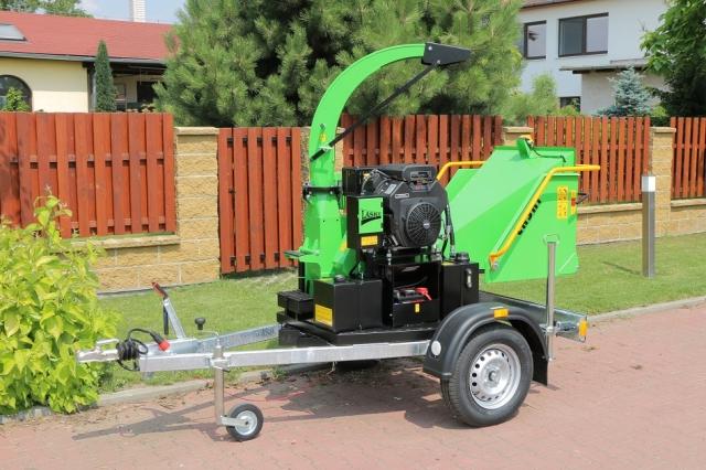 Τεμαχιστής κλαδιών σε τρέιλερ με αυτόνομο κινητήρα 25ΗΡ KOHLER, 4 λεπίδες τεμαχισμού, απόδοση 3-8m3/h, μέγιστη διάμετρος κλαδιού προς τεμαχισμό 100mm, υπόλειμμα τεμαχισμού 11mm. Bάρος 630kg.