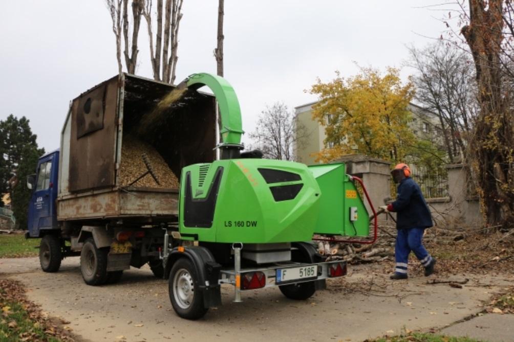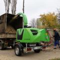 Κλαδοτεμαχιστής τοποθετημένος σε τρέιλερ με φρένα το οποίο κοτσάρεται