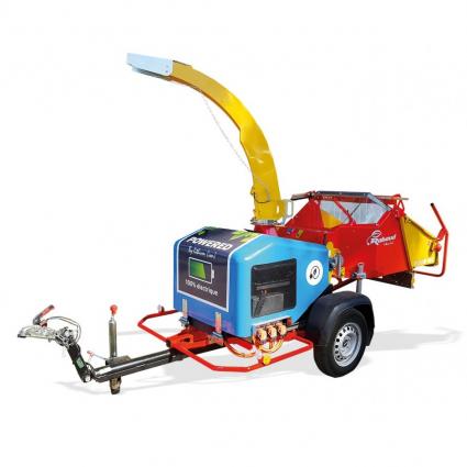Τεμαχιστής κλαδιών ηλεκτρικός σε τρέιλερ.