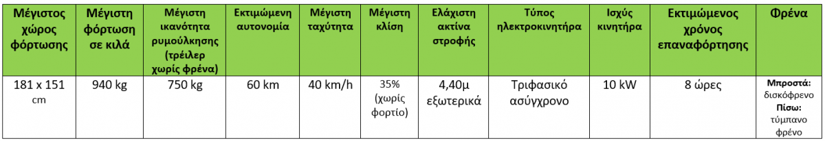 ανατρεπόμενο όχημα (συνολικά 1 τόνο στο όχημα), και μπορεί επίσης να ρυμουλκήσει έως και 750 κιλά.